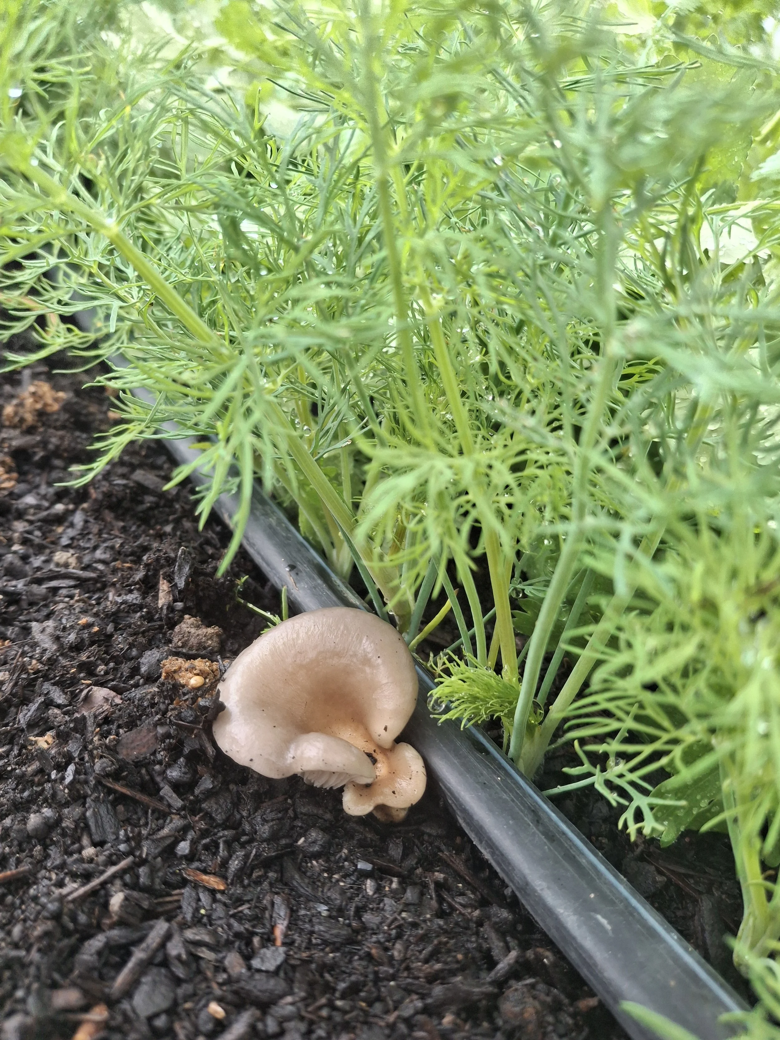 We do our best to provide habitat and nectar sources for beneficial insects and pollinators by planting flowers, and allowing some of our herb crops, like cilantro, dill, and basil,to flower before they are removed from the garden